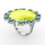 Neon sarı akrilik ve yeşil kuvars 925 ayar gümüş yüzük