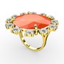 Neon turuncu akrilik ve beyaz zirkon 925 ayar altın kaplama gümüş yüzük