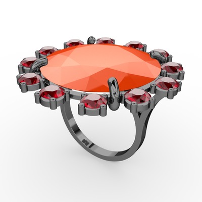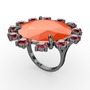 Neon turuncu akrilik ve garnet 925 ayar siyah rodyum kaplama gümüş yüzük