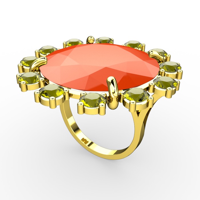 Neon turuncu akrilik ve peridot 8 ayar altın yüzük