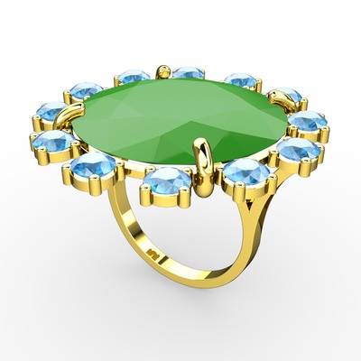 Neon yeşil akrilik ve akuamarin 8 ayar altın yüzük