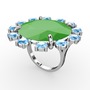 Neon yeşil akrilik ve akuamarin 925 ayar gümüş yüzük