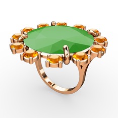 Neon yeşil akrilik ve akuamarin 925 ayar rose altın kaplama gümüş yüzük
