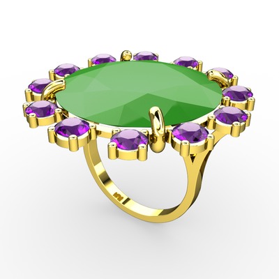 Neon yeşil akrilik ve ametist 8 ayar altın yüzük