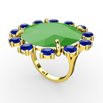 Neon yeşil akrilik ve lab safir 8 ayar altın yüzük