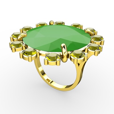 Neon yeşil akrilik ve peridot 925 ayar altın kaplama gümüş yüzük