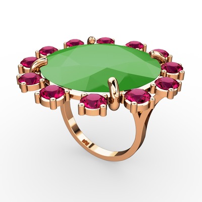 Neon yeşil akrilik ve rodolit garnet 18 ayar rose altın yüzük