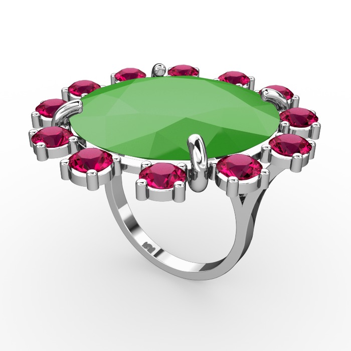 Neon yeşil akrilik ve rodolit garnet 8 ayar beyaz altın yüzük