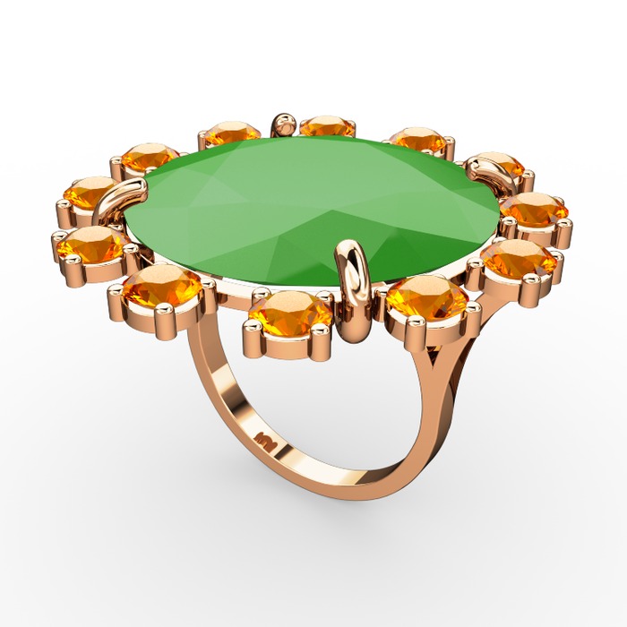 Neon yeşil akrilik ve sitrin 14 ayar rose altın yüzük