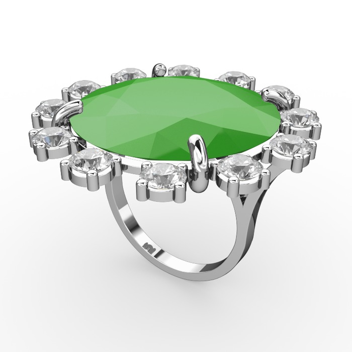 Neon yeşil akrilik ve swarovski 925 ayar gümüş yüzük