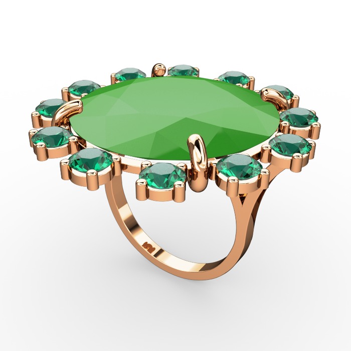 Neon yeşil akrilik ve yeşil kuvars 8 ayar rose altın yüzük