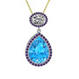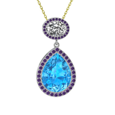 Akuamarin, beyaz zirkon ve ametist 925 ayar gümüş kolye (40 cm altın rolo zincir)