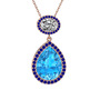 Akuamarin, beyaz zirkon ve lab safir 925 ayar rose altın kaplama gümüş kolye (40 cm gümüş rolo zincir)