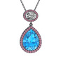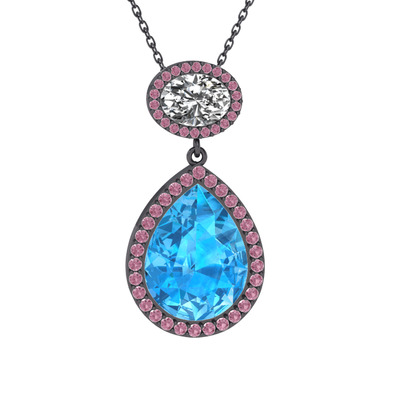 Akuamarin, beyaz zirkon ve pembe kuvars 925 ayar siyah rodyum kaplama gümüş kolye (40 cm gümüş rolo zincir)