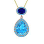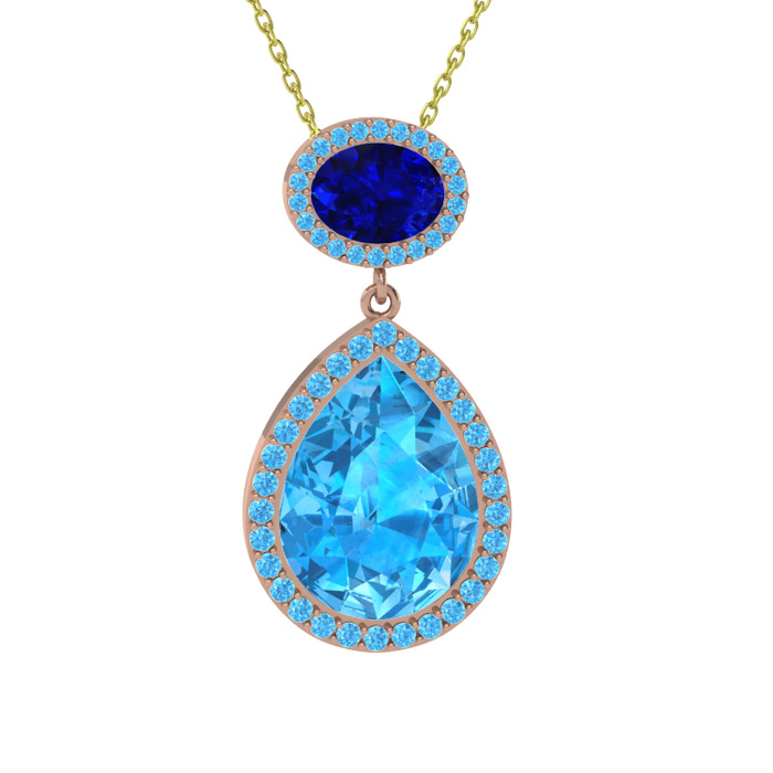 Akuamarin ve lab safir 925 ayar rose altın kaplama gümüş kolye (40 cm gümüş rolo zincir)