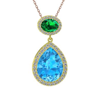 Akuamarin, yeşil kuvars ve beyaz zirkon 14 ayar altın kolye (40 cm rose altın rolo zincir)