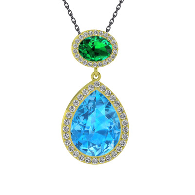 Akuamarin, yeşil kuvars ve beyaz zirkon 18 ayar altın kolye (40 cm gümüş rolo zincir)