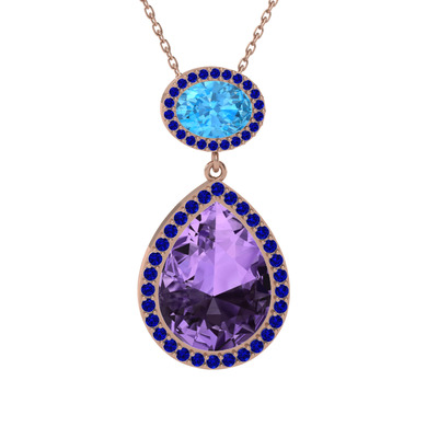 Ametist, akuamarin ve lab safir 14 ayar rose altın kolye (40 cm rose altın rolo zincir)