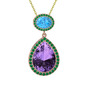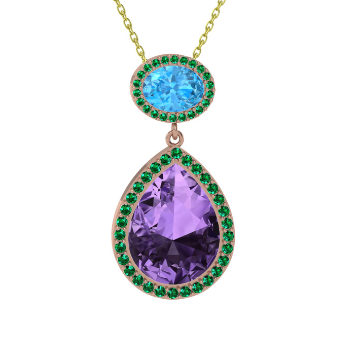 Ametist, akuamarin ve yeşil kuvars 14 ayar rose altın kolye (40 cm altın rolo zincir)