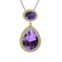 Ametist ve beyaz zirkon 14 ayar altın kolye (40 cm rose altın rolo zincir)