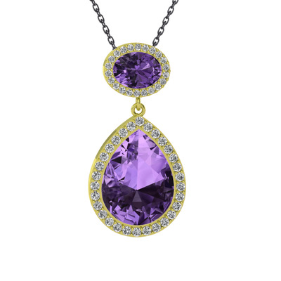 Ametist ve beyaz zirkon 925 ayar altın kaplama gümüş kolye (40 cm gümüş rolo zincir)