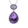 Ametist, beyaz zirkon ve lab safir 8 ayar rose altın kolye (40 cm beyaz altın rolo zincir)