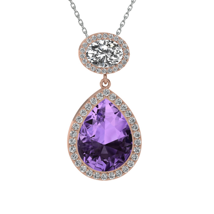 Ametist ve beyaz zirkon 925 ayar rose altın kaplama gümüş kolye (40 cm beyaz altın rolo zincir)