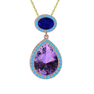 Ametist, lab safir ve akuamarin 18 ayar rose altın kolye (40 cm altın rolo zincir)