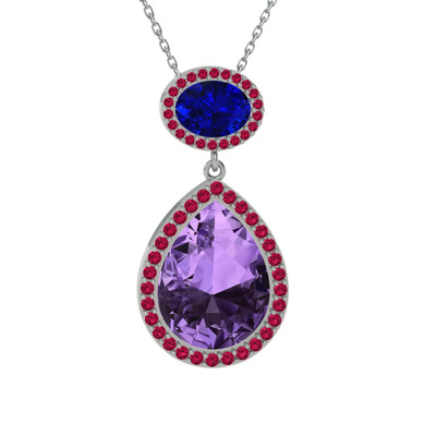 Ametist, lab safir ve rodolit garnet 14 ayar beyaz altın kolye (40 cm beyaz altın rolo zincir)
