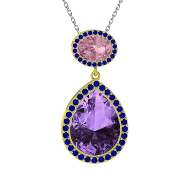 Ametist, pembe kuvars ve lab safir 14 ayar altın kolye (40 cm gümüş rolo zincir)