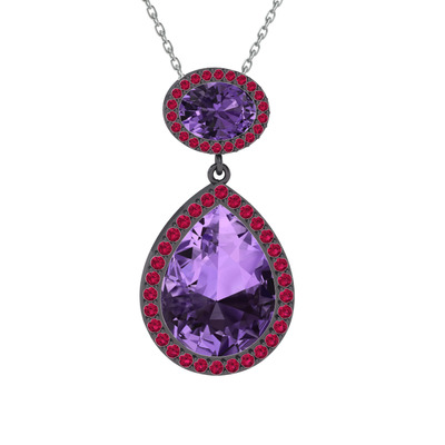 Ametist ve rodolit garnet 925 ayar siyah rodyum kaplama gümüş kolye (40 cm beyaz altın rolo zincir)