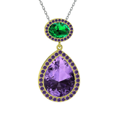 Ametist ve yeşil kuvars 14 ayar altın kolye (40 cm beyaz altın rolo zincir)