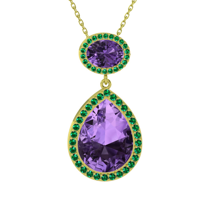 Ametist ve yeşil kuvars 925 ayar altın kaplama gümüş kolye (40 cm altın rolo zincir)