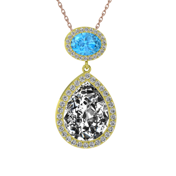 Beyaz zirkon ve akuamarin 14 ayar altın kolye (40 cm rose altın rolo zincir)