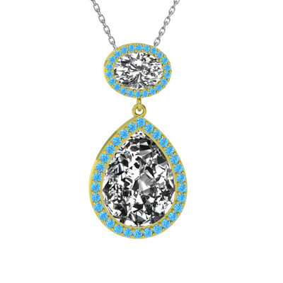 Beyaz zirkon ve akuamarin 925 ayar altın kaplama gümüş kolye (40 cm beyaz altın rolo zincir)