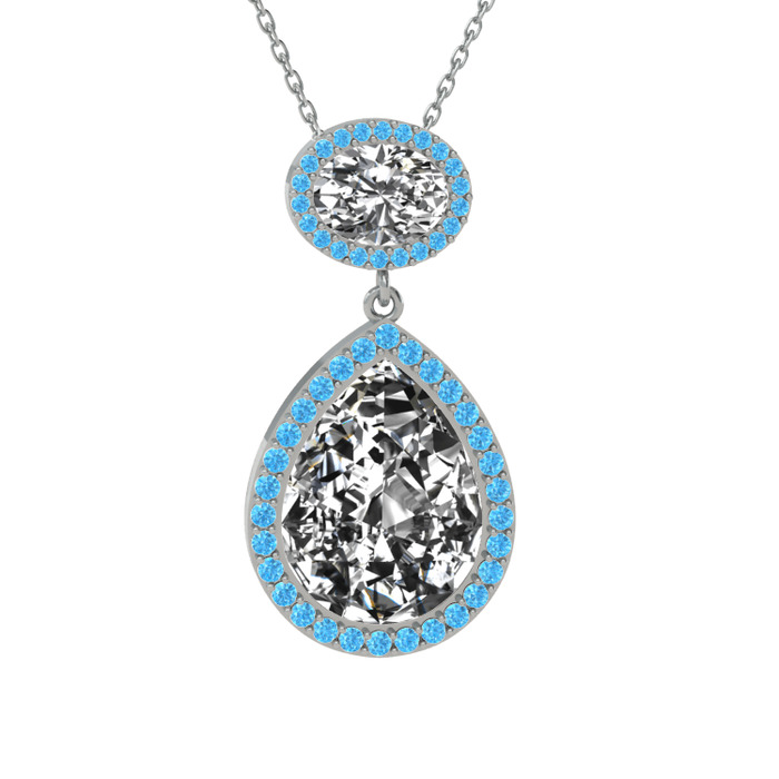 Beyaz zirkon ve akuamarin 925 ayar gümüş kolye (40 cm gümüş rolo zincir)