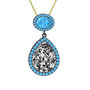Beyaz zirkon ve akuamarin 925 ayar siyah rodyum kaplama gümüş kolye (40 cm gümüş rolo zincir)