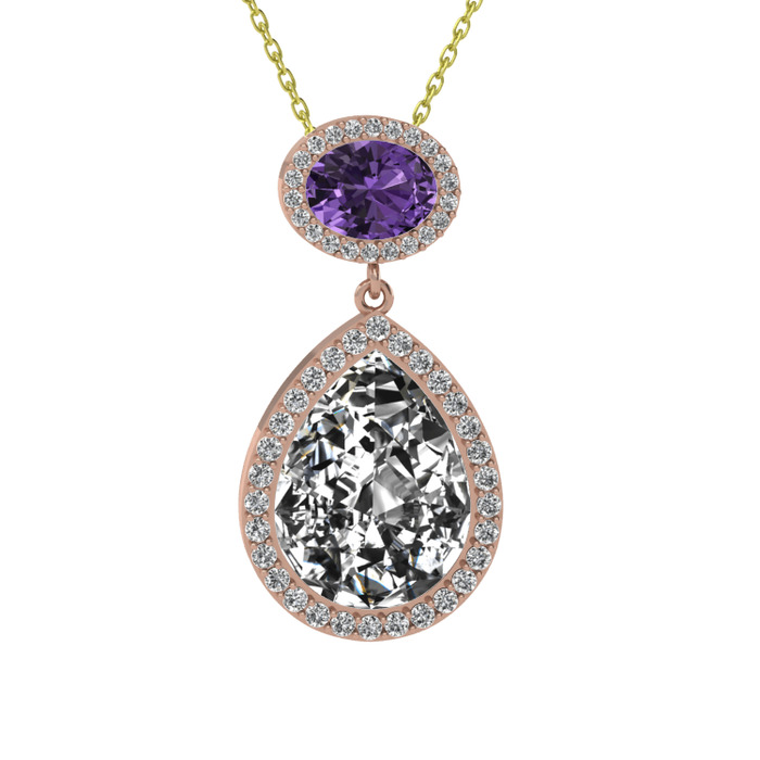 Beyaz zirkon ve ametist 14 ayar rose altın kolye (40 cm altın rolo zincir)