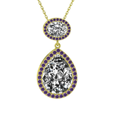 Beyaz zirkon ve ametist 925 ayar altın kaplama gümüş kolye (40 cm altın rolo zincir)