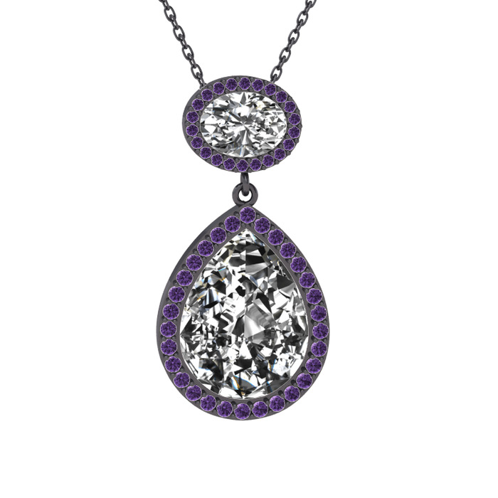 Beyaz zirkon ve ametist 925 ayar siyah rodyum kaplama gümüş kolye (40 cm gümüş rolo zincir)