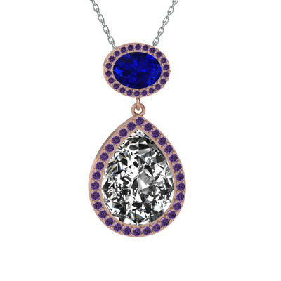 Beyaz zirkon, lab safir ve ametist 925 ayar rose altın kaplama gümüş kolye (40 cm beyaz altın rolo zincir)
