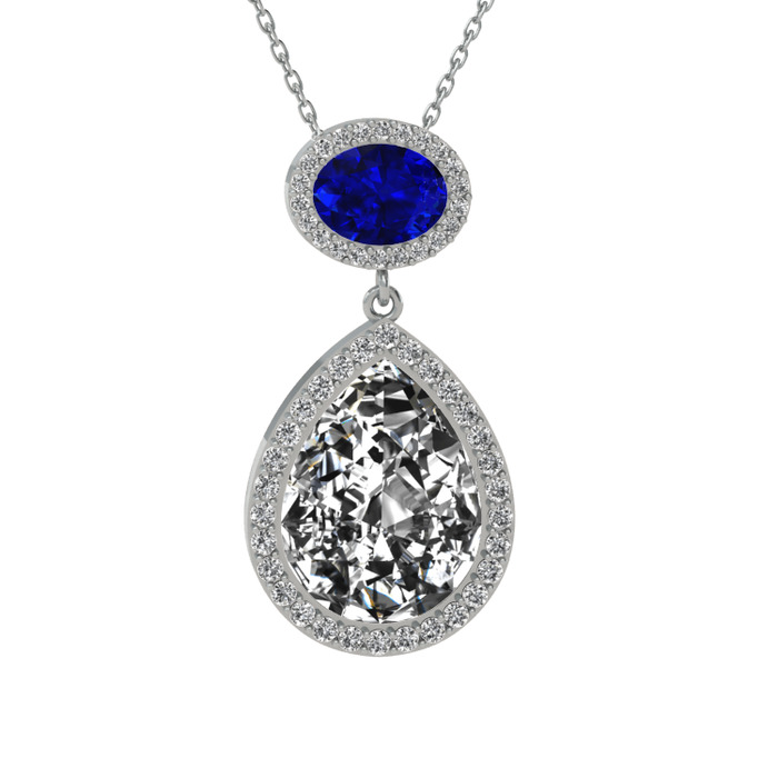 Beyaz zirkon ve lab safir 925 ayar gümüş kolye (40 cm gümüş rolo zincir)