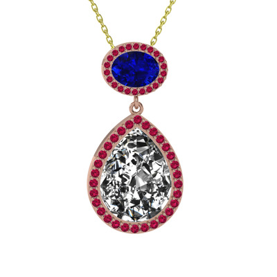 Beyaz zirkon, lab safir ve rodolit garnet 14 ayar rose altın kolye (40 cm altın rolo zincir)