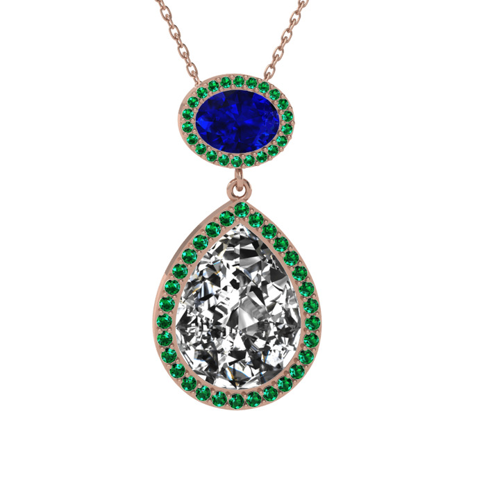 Beyaz zirkon, lab safir ve yeşil kuvars 18 ayar rose altın kolye (40 cm gümüş rolo zincir)