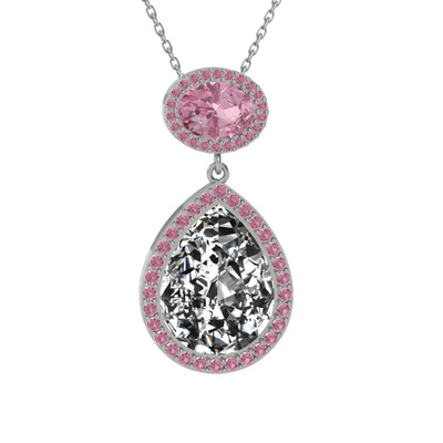 Beyaz zirkon ve pembe kuvars 18 ayar beyaz altın kolye (40 cm gümüş rolo zincir)