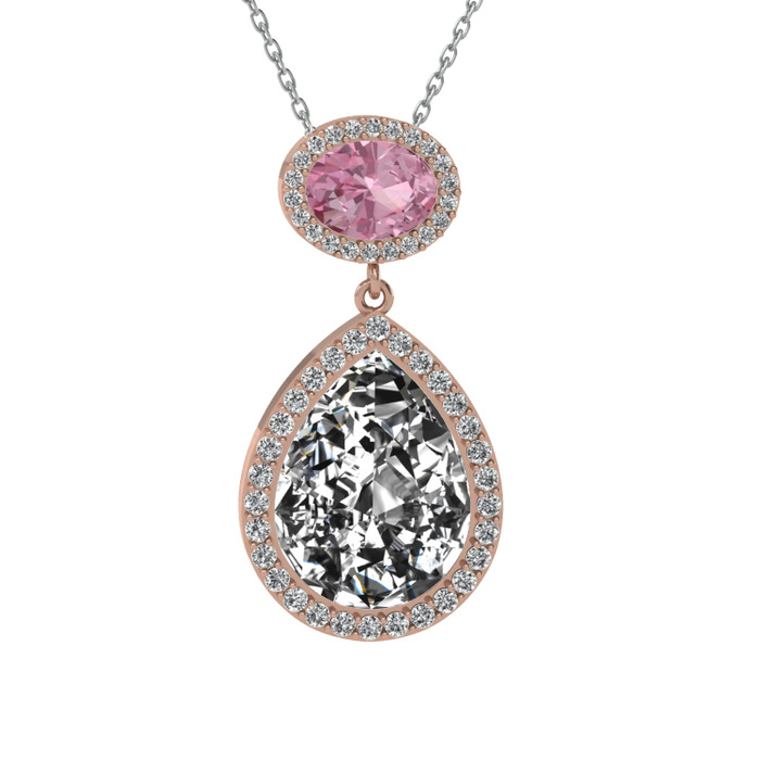 Beyaz zirkon ve pembe kuvars 8 ayar rose altın kolye (40 cm beyaz altın rolo zincir)