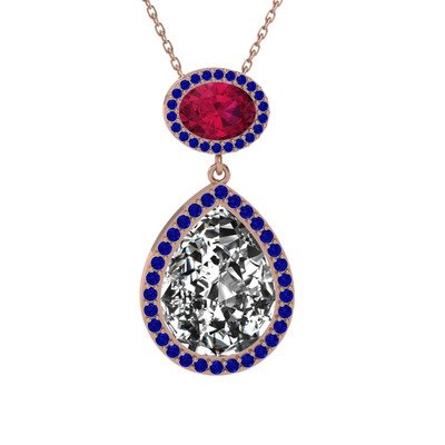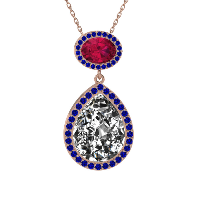 Beyaz zirkon, rodolit garnet ve lab safir 18 ayar rose altın kolye (40 cm rose altın rolo zincir)