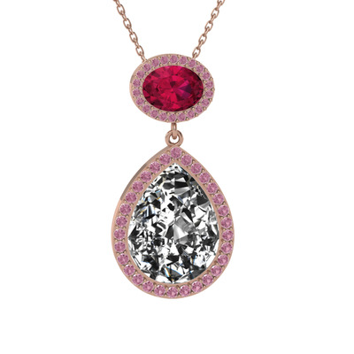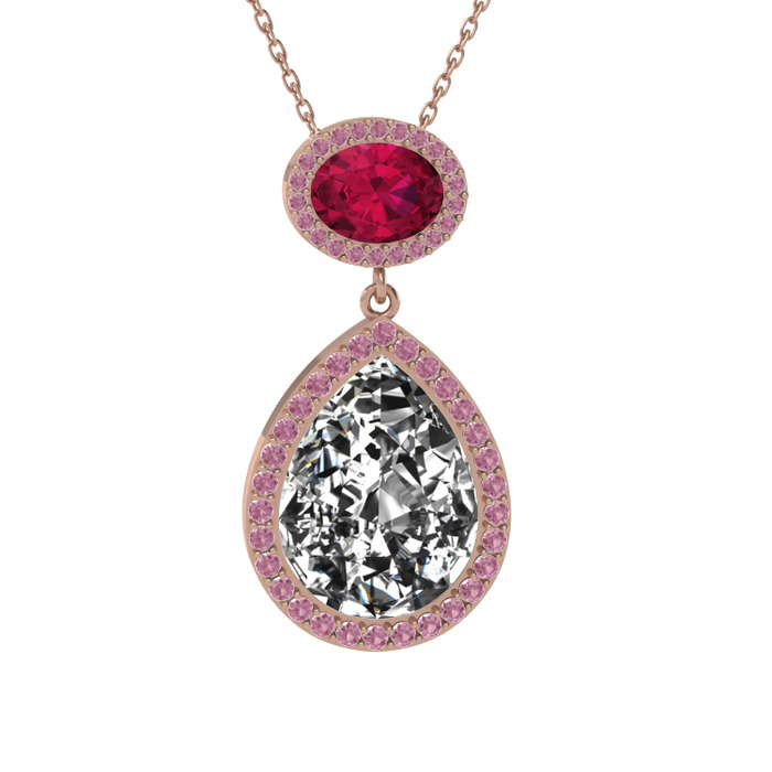 Beyaz zirkon, rodolit garnet ve pembe kuvars 14 ayar rose altın kolye (40 cm rose altın rolo zincir)