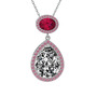 Beyaz zirkon, rodolit garnet ve pembe kuvars 18 ayar beyaz altın kolye (40 cm gümüş rolo zincir)