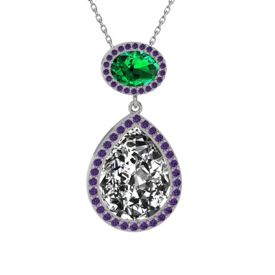 Beyaz zirkon, yeşil kuvars ve ametist 8 ayar beyaz altın kolye (40 cm beyaz altın rolo zincir)